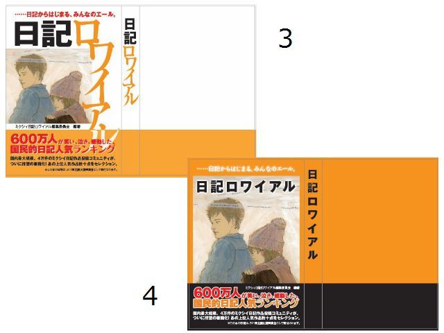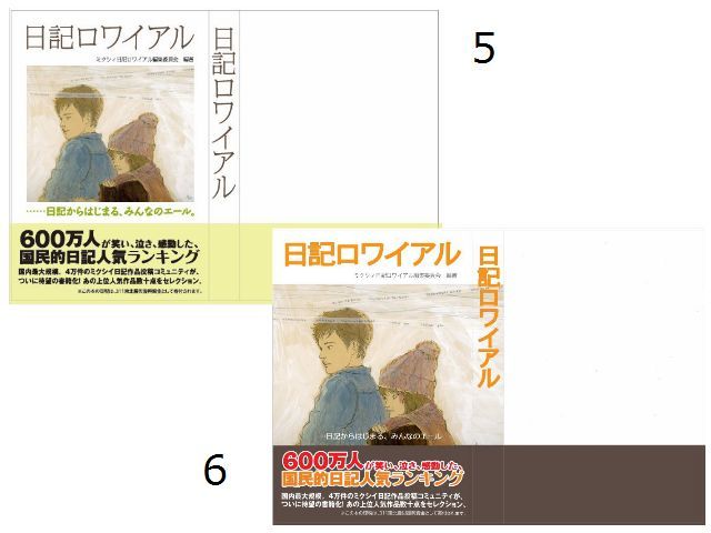 皆様、お世話になっております。 書籍化委員のめさです。 いよいよ10月に刊行されることになった当コミュ二ティの書籍ですが、この場をお借りして皆さんと一緒に表紙カバーをどれにするのかを決めていこうかと存じます。 まずは当イベントトピックスの画像をご確認くださいませ。 計6点の表紙案がございます。 この中のどれにするか、率直なご意見をお聞かせくただければと思います。 アンケート機能が使えませんのでお手数ですがコメントにて表紙の番号を、お1人様1票を投じてやってください。 ご協力のほど