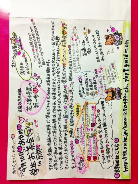 ***京都のお茶室で*** **学生お茶会をしよう** 大学生のみなさんこんにちは(^o^) 京都女子大学のこのみんです。 9月10日京都のお茶室で、 お茶会を開くことになったので、告知させて頂きます* *9/10京都のお茶室で 学生茶会をしよう* お茶会の目的は *茶道の楽しさを広げる *人の輪を広げる です( ^ω^ )!! はじめての人でも参加できるお茶会で、多くの方に茶道の楽しさを感じてもらいたいです(*^^*)♡ 最初にお茶会の作法の講習や、 お茶を点てる体験もあります。