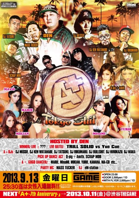 A+DJs : DJ MISSIE, DJ KEN WATANABE, DJ TASTUKI, DJ RIKUMARU,