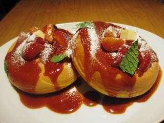 コミュ参加の皆様、いつもお世話になっております。 ミシュラン一ツ星を獲得し、アメリカの料理界を代表する、 デイビット・マイヤー氏のカフェでパンケーキを食べる会を開催します トッピングがストロベリーとバナナから選べるカリフォルニアスタイルのパンケーキは、 北海道産の小麦粉を使用してふっくらと焼き上げられ、 小麦粉やバターの風味をしっかり味わえます。 また、たっぷり掛かった甘さ控えめのキャラメルソースは、 厚みのある生地との相性が抜群です シンプルながら上品さと豪華さを兼ね備えたカフェの雰囲
