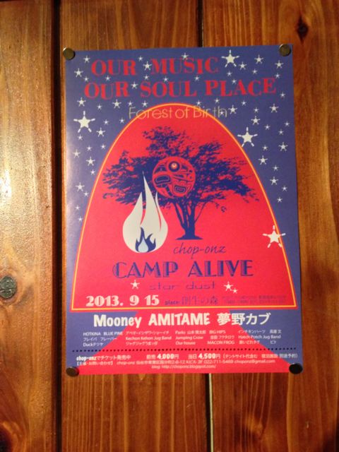 仙台市青葉区国分町のアメリカンミュージックBAR チョップオンズが毎年開催しているキャンプLIVEイベントです! 出演 MOONEY AMITAME 夢野カブ HOTKINA BLUEPINE アベマ・イシザワ・ショ−イチ Parks 山本慎太郎 BIG HIPS インチキンハ−ト(S) 高雄 文 フレイバフレイバ− kechon kechon jug band Jumping Crow 吉田ふくたろう Hotch Potch Jug Band DUCKテツヤ 酔いどれタグ ジャグジャグうまっ仔 OUR HOUSE MACON FROG 去年もいらした方々、来れなかった方々、 今年もまた体感したい方々、、