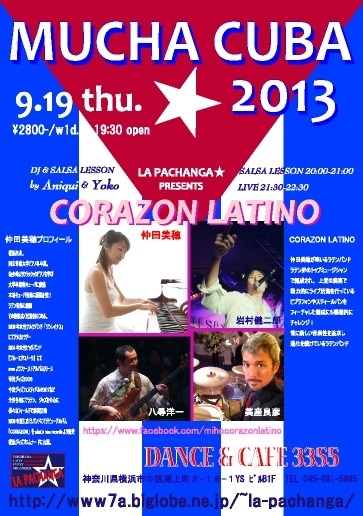 9·î¤ÎMUCHA CUBA¡¢1·î¤Ë¥É¥«¡¼¥ó¡ª¤ÈÀ¹¤ê¾å¤¬¤Ã¤¿¡ØCORAZON LATINO¡Ù¤ÎºÆÅо졪¡É 8·î¤Î³¤¤Î²È¥é¥¤¥Ö¤â¥Ï¥ó¥Ñ¤Ê¤¤À¹¤ê¾å¤¬¤ê¤Ç¤·¤¿¡ª ÃçÅÄÈþÊæ¤ÎÃËÁ°¤Ê¥Ô¥¢¥Î¡¢¥ï¥¤¥ë¥É¤Ê´ä¼·òÆóϺ¤Î¥Ü¡¼¥«¥ë¡¢ ¥Õ¥¡¥ó¥¡¼¤ÊȬ¿ÒÍΰì¤Î¥Ù¡¼¥¹¡¢¤½¤·¤Æ¥ê¥º¥à¤Î¥ï¥ó¥À¡¼¥é¥ó¥É¡¢¥ß¥¶¥ê¡¼¥È¤Î¥É¥é¥à¡ª ¤³¤ó¤ÊÀ¨¤¤¥á¥ó¥Ð¡¼¤Î¥é¥¤¥Ö¤ò´Ö¶á¤Ë¸«¤ÆÄ°¤¤¤Æ¡¢¥é¥Æ¥ó²»³Ú¤ÎÁÇÀ²¤é¤·¤µ¤Ë¥É¥Ã¥×¥ê¥Ï¥Þ¤Ã¤Æ¤¯¤À¤µ¤¤¡ª ¥µ¥ë¥µ¥ì¥Ã¥¹¥ó¤âÄ̾ïÄ̤ꡢ¤ß¤Ã¤Á¤ê¤ä¤ê¤Þ¤¹¡ª ¸ð¤¦¤´´üÂÔ¡ª ¢£Æü»þ¡§ £²£°£±£³¡¥£¹¡¥£±£¸¡¡THU 19:30 OPEN ¢£¥¨¥ó¥È¥é¥ó¥¹¡§ ¡ï