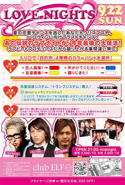 ¥Ï¥Ã¥Ô¡¼¥¢¥ï¡¼Ãæ¡¢¥²¥¹¥È¤ÇÆþ¾ì¤·¤¿½÷À¤ÏÆþ¾ìÎÁ̵ÎÁ¡¢£±£²»þ°Ê¹ß¤â¥²¥¹¥ÈÆþ¾ì¤Ç1000/2D¤È¼Â¼Á̵ÎÁ¤Ç¤¹ GUEST¤Ï¤ªÅ¹¤Î¥¨¥ó¥È¥é¥ó¥¹¤Ç¡Ú¥¢¥é¥¿¤ÎGUEST¤Ç¥¢¥é¥¿¡Û¤Ç¤¹¤È¸À¤¦¤À¤±¤Ç£Ï£Ë 9·î22Æü(ÅÚ)¤ÎCLUB ELF¤Ï´ÇÈÄ¥¤¥Ù¥ó¥È¡ØINTER MIX¡Ù¤Ï½ËÁ° Special¤È¤·¤Æ¥¹¥Ú¥·¥ã¥ë¥³¥ó¥Æ¥ó¥Ä¤Ç¤ªÁ÷¤ê¤·¤Þ¤¹¡£ ¡¡¡¡¥²¥¹¥ÈDJ¤Ë»¨»ï¡ØBITTER¡Ù¤è¤ê¡ØARATA¡Ù ¡¡¡¡0»þ¤Þ¤ÇÆþ¾ì¤Î½÷À¤Ë2ËçÁÈMIX CD¥×¥ì¥¼¥ó¥È ¡¡¡¡0»þ¤Þ¤Ç½÷ÀÆþ¾ì̵ÎÁ ¡¡ 2ËçÁÈ¥ª¥ê¥¸¥Ê¥ë£Ã£Ä¤ÏELF¡¡INTER MIX¤ÎDJ¤Ë¤è¤ë¥ª¥ê¥¸¥Ê¥ëMIX