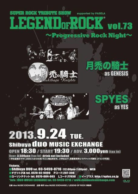 出演は月禿の騎士 as GENESIS/SPYES as YESの2バンドでたっぷりとお届けいたします。