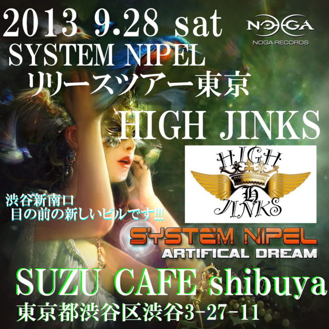 9·î28Æü(ÅÚ)½ÂëSUZU-CAFE SYSTEM NIPEL ¥ê¥ê¡¼¥¹¥Ä¥¢¡¼Åìµþ HIGH JINKS SOUL JAPAN ¼èºàÆþ¤ê¤Þ¤¹ Feat NOGA RECORDS SYSTEM NIPEL Artificial Dream ¥ê¥ê¡¼¥¹¥Ä¥¢¡¼TOKYO ÂΩ¶¸DJ CANDY¥×¥í¥Ç¥å¡¼¥¹! HIGH JINKS ¤³¤Î¿·¤·¤¤¥¤¥Ù¥ó¥È¤¬ 9·î28Æü¤Ë ¥ª¡¼¥×¥Ë¥ó¥°¥Ñ¡¼¥Æ¥£¡¼¤ò³«ºÅ!! ¤½¤·¤Æ¤³¤Î ¥ª¡¼¥×¥Ë¥ó¥°¥Ñ¡¼¥Æ¥£¡¼¤Ë SYSTEM NIPEL ¤¬ LIVE SET¤ÇÅоì!!! ¹¹¤ËK-HOLE¤Î¥Ü¥¹ DJ KATO ¡õ NOGA RECORDS/K-HOLE¤«¤é DJ ÃÄĹ ¡õ NOGA RECORDS/territory¤«¤é DJ U¡ù8 Å´ÈÄ