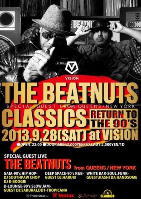 ´ÉÍý¿ÍÍÍ¡¢¹ðÃμºÎéÃפ·¤Þ¤¹¡£ 90¡Çs ¥Ò¥Ã¥×¥Û¥Ã¥×¥·¡¼¥ó¤òÂåɽ¤¹¤ë¥ì¥¸¥§¥ó¥É¤Î¥é¥¤¥ô¤¬¼Â¸½ ¡ÚTHE BEATNUTS¡Û¤¬NY¤è¤êÍèÆü ÀäÂи«Æ¨¤»¤Ê¤¤¥é¥¤¥ô¤Ç¤¹ ¶½Ì£¤¢¤ëÊý¤Ï¤ªµ¤·Ú¤Ë¥á¥Ã¥»¡¼¥¸Äº¤±¤ì¤Ð¤È»×¤¤¤Þ¤¹ ¥Ò¥Ã¥×¥Û¥Ã¥×¤Î²«¶â´ü¤È¤¤¤ï¤ì¤ë90ǯÂå¤Ë¥Õ¥©¡¼¥«¥¹¤·¡¢³Æ¥Õ¥í¥¢¤Î¥³¥ó¥»¥×¥Á¥ã¥ë¤Ê±é½Ð¤Ç¥ª¡¼¥Ç¥£¥¨¥ó¥¹¤ò¼î¶Ì¤Î¥ß¥å¡¼¥¸¥Ã¥¯¥¸¥ã¡¼¥Ë¡¼¤Ø¤ÈƳ¤¤¤Æ¤¤¤¯¥Ñ¡¼¥Æ¥£¡£¡ÈCLASSICS¡É¤Ë¡¢¤Þ¤µ¤Ë¤½¤Î¥Æ¡¼¥Þ¤Ë¤Õ¤µ¤ï¤·¤¤90ǯÂå¤òÂåɽ¤¹¤ë¥¹¡¼¥Ñ¡¼¥¹¥¿¡¼¤¬Åо줹¤ë¡£BEATNUTS¤Ï¡¢¸½ºß¤â¥Õ¥í¥¢¤Ç¥×¥ì