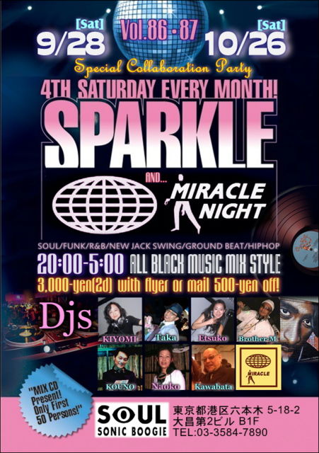 9·î¡¦10·î¤ÎSPARKLE¤Ï¡¢Soul Bar MIRACLE¼çºÅ¤ÎMIRACLE NIGHT¤È¤Î ¥³¥é¥Ü¥ì¡¼¥·¥ç¥ó´ë²è¤ÇÏ»ËÜÌÚSoul Sonic Boogie¤Ç³«ºÅÃפ·¤Þ¤¹ ޥޥޥޥޥޥޥޥޥޥޥޥޥޥޥޥޥޥޥޥޥޥޥޥޥޥޥޥޥޥޥޥޥޥޥޥޥޥޥޥޥޥޥޥޥޥޥޥޥޥޥޥޥޥޥޥޥޥޥޥ Ëè·îÂ裴ÅÚÍ˳«ºÅ¤ÎSPARKLE!!! º£²ó¤Ç86²óÌÜŽ¤9ǯÌÜÆÍÆþ¤Ç¤¹!!! 7/27(Sat)¤ÎÀÄ»³¥Õ¥¡¥¤¥Ê¥ë°Ê¹ß£±¥ö·î¶õ¤¤¤Æ¤·¤Þ¤¤¤Þ¤·¤¿¤¬Ž¤9·î¤Ï¤Ê¤ó¤ÈSoul Bar MIRACLE¼çºÅ¤Î¡ÉMIRACLE NIGHT"¤È¤Î¥³¥é¥Ü¥ì¡¼¥·¥ç¥ó¤Ç³«ºÅÃפ·¤Þ¤¹¡ù MIRACLE NIGHT¡¢¤½¤·¤Æ