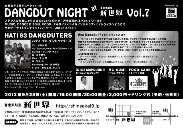 Festival Indonesia 2013 ¤Î¼¡¤Ï¤³¤Î¥¤¥Ù¥ó¥È¤Ç¥¤¥ó¥É¥Í¥·¥¢µ¤Ê¬¤òºÆ¤Ó¡ª Ï»ËÜÌÚ¤ØGooooooo!!!!!! °ì½ï¤Ë¥´¥ä¥ó¤·¤Þ¤·¤ç¤¦¢ö ¡ö¡ö¡ö¡ö¡ö¡ö¡ö¡ö¡ö¡ö¡ö¡ö¡ö¡ö¡ö¡ö¡ö¡ö¡ö¡ö ¡ØDANGDUT NIGHT @SHINSEKAI Vol.7¡Ù ¥¢¥¸¥¢¿Í¤Ê¤éï¤Ë¤Ç¤â¤¢¤ëGoyang¤Î¥Ä¥Ü¡£²¡¤»¤Ð¸½¤ì¤ëKoplo¥ï¡¼¥ë¥É¡£ MUSIC, DANCE¤ËSOUL FOOD¡£¥¨¥¥µ¥¤¥Æ¥£¥ó¥°¤Ê¥¤¥ó¥É¥Í¥·¥¢¡¦¥Ê¥¤¥È¥é¥¤¥Õ¤Ø¤è¤¦¤³¤½¡£ ¥µ¥¿¥Ç¡¼¥Ê¥¤¥È¥À¥ó¥É¥¥¥Ã¥È¥Ñ¡¼¥Æ¥£!! Untuk anda!! Apa Dangdut? (¥À¥ó¥É¥¥¥Ã¥È¤È¤Ï¡©) ¡¡¥¤¥ó¥É¥Í¥·¥¢¿Í¤¬Ëܲ»¤Ç°¦¤¹¤ë¹ṉ̃Ū¥À¥ó¥¹²ÎÍØ¡£¥¢¥¸¥¢¥Á¥Ã¥¯¤Ê°¥½¥