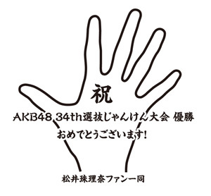 9·î21Æü¡¦23Æü¤Ë°®¼ê²ñ²ñ¾ì¤Ë¤ÆÏä˾夬¤ê¤Þ¤·¤¿ ¡ÖAKB48 34th¥·¥ó¥°¥ëÁªÈ´¤¸¤ã¤ó¤±¤óÂç²ñ¡×Í¥¾¡¤ª½Ë¤¤´ë²è¤Ç¤¹¤¬¡¢ SKE48·à¾ì¤Ë¤Æ£±£°·î£µÆü¤Ë¹Ô¤Ê¤ï¤ì¤ëÆÃÊ̸ø±é¤Ë´Ö¤Ë¹ç¤ï¤»¤ë¤è¤¦¿Ê¹Ô¤·¤Æ¤¤¤Þ¤¹¡£ ÆâÍÆ¡§¥¬¥é¥¹À½¤Î²Ö´ï¤Ë¥á¥Ã¥»¡¼¥¸¤òĦ¹ï¤·¤¿¤â¤Î¤È²Ö«¤ò¥»¥Ã¥È¤Ë¤·¤ÆÂ£¤ë¡£ ¡Ê²Ö´ï¤È¥á¥Ã¥»¡¼¥¸¤Î¥¤¥á¡¼¥¸²èÁü¤òźÉÕ¤·¤Þ¤¹¡Ë ¤ª½Ë¤¤Â³¤¤Ë¤Ê¤ê¤Þ¤¹¤¬¡¢´ë²è¤Ë»²²Ã¤·¤ÆÄº¤±¤ëÊý¤òÊ罸¤·¤Þ¤¹¡£ ÈñÍѤϣ±Ëü¡Á£±Ëü£³Àé±ßÄøÅÙ¤ò¹Í¤¨¤Æ¤ª¤ê¡¢»²²Ã¿Í¿ô¤ÇƬ³ä¤ê¤È¤·¤Þ¤¹¡£ ½¸¶â¤ÏÀ齩³Ú¡¦½éÆü´ë²è¤ËƱ¤¸¡£ ¡üľÀܼêÅϤ·¤Î¾ì¹ç ¡¡£±£°·î£±£³