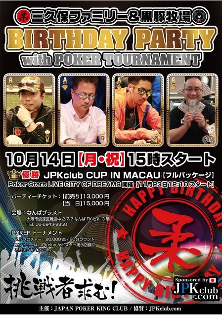 »°µ×ÊÝ¥Õ¥¡¥ß¥ê¡¼¡õ¹õÆÚËÒ¾ìBIRTHDAY¡¡PARTY with POKER¡¡TOURNAMENT