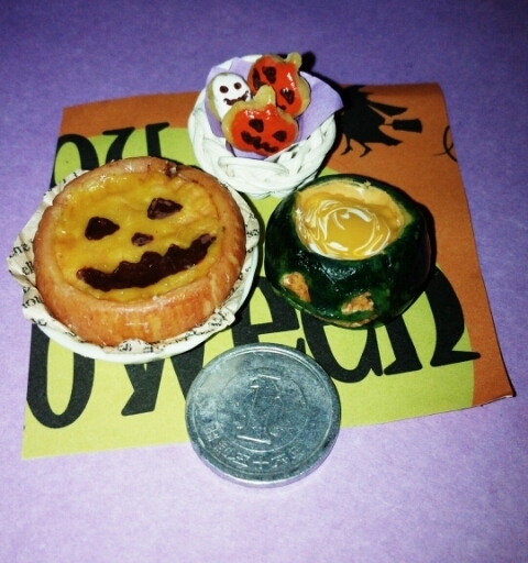 ミニチュアフード(大人、子供) : 樹脂粘土と絵の具 を使って本物そっくり 1円玉 サイズで好きなフードを作ります。託児付で 期間中11時〜12時30分のうちお好きな時間に大人も 子供も作品作りをします。 10月限定Halloweenのミニチュアフードを作ろう!! ****************** •ミニチュアフード初回入門体験¥2500 ・3回チケット¥6000(期間中)イ チオシ!!お得♪ *期間中木、日開催 •作品を作る際に必要な粘土や絵の具や テキストは全てこちらでご用意をさせて いただ