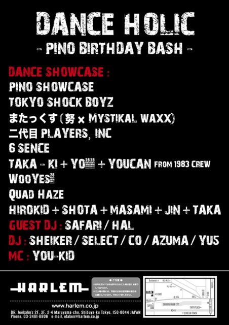 本日木曜は渋谷ハーレムにて、"DANCE HOLIC PINO BIRTHDAY BASH"です☆ ★★★★★★★★★★★★★★★★★★★★★ 通常\3000/1dですがエントランスにて 『シェイカーのゲストでハーレム』 と言って頂ければ、、、 ■1時まで→1500/1d ■1時以降→2000/1d とお得なゲスト料金で何名様でもご入場出来ます!! ★★★★★★★★★★★★★★★★★★★★★ また個別でもゲストお取り出来ますのでゲスト希望の方は、お名前と大体の人数を添えてお気軽にメッセージ下さい!! ■詳細↓↓ ■10/3(木)"DANCE HOLI