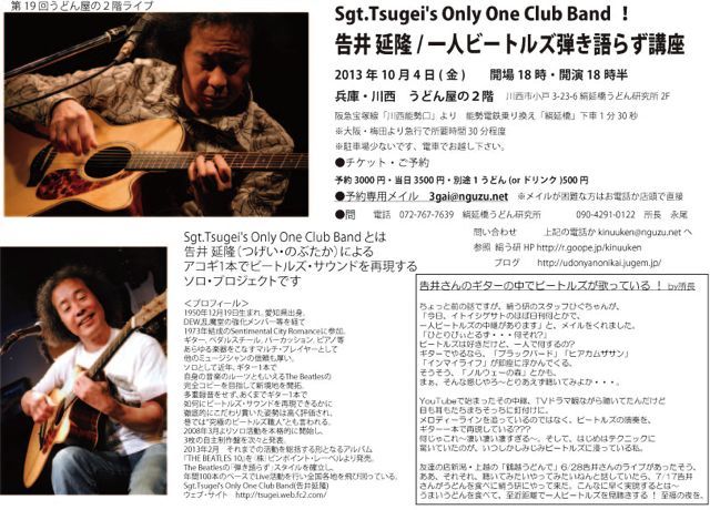 ÀîÀ¾¤Ë°ì¿Í¥Ó¡¼¥È¥ë¥º¤¬¤ä¤Ã¤ÆÍè¤ë ! Âçºå¤«¤é¤â»×¤Ã¤¿¤è¤ê¶á¤¯¤ÆÊØÍø¡¢ ʼ¸Ë¡¦ÀîÀ¾¤Î¡Ö¸¨±ä¶¶¤¦¤É¤ó¸¦µæ½ê¡×£²³¬¤Ë ¹ð°æ¤µ¤óÅо졣 £²³¬¤Ï¥«¥Õ¥§¡¦¥é¥¤¥Ö¥Ï¥¦¥¹¡Ö¤¦¤É¤ó²°¤Î£²³¬¡× ¤ß¤ó¤Ê¤«¤Ö¤ê¤Ä¤¤Çʹ¤¤¤Æ¤ß¤é¤ì¤ë¤è¤¦¤Ë¡¢ ¿§¡¹¹©Éפ·¤Æ¤ªÂÔ¤Á¤·¤Æ¤¤¤Þ¤¹¡£ ¤¤¤Þ¤â¿§¤¢¤»¤Ê¤¤¥Ó¡¼¥È¥ë¥º¤ò ¤¦¤Þ¤¤¤¦¤É¤ó¤ò¤¹¤¹¤ê¤Ê¤¬¤é¡¢ ¤¦¤Þ¤¤¥Ó¡¼¥ë¤â°û¤ß¤Ê¤¬¤é ¤¸¤Ã¤¯¤ê¤¸¤ó¤ï¤ê³Ú¤·¤àÁÇŨ¤ÊÌë¤ò¡£ ¤¦¤É¤ó²°¤Î£²³¬¥é¥¤¥Ö19 Sgt.Tsugei's Only One Club Band¡ª ¹ð°æ ±äδ/°ì¿Í¥Ó¡¼¥È¥ë¥ºÃƤ¸ì¤é¤º¹ÖºÂ 2013ǯ10·î4Æü(¶â) ³«¾ì18
