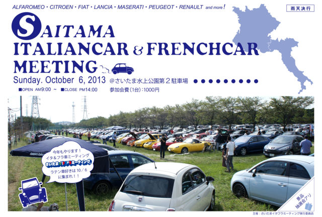 ¡Ø¤µ¤¤¤¿¤Þ¥¤¥¿¥Õ¥é¥ß¡¼¥Æ¥£¥ó¥°£²£°£±£³¡Ù ºòǯ¤Ï£²£·£°Âæ°Ê¾å¤Î¤´»²²Ã¤ò¤¤¤¿¤À¤­³«ºÅ¤¤¤¿¤·¤Þ¤·¤¿¡£ º£Ç¯¤â¡¢¥¤¥¿¥Õ¥é¼Ö¹¥¤­¤Î¸òή¤Î¾ì½ê¤È¤·¤Æ³«ºÅ¤¤¤¿¤·¤Þ¤¹¡£ ³«ºÅÆü¡§£²£°£±£³Ç¯£±£°·î£¶Æü¡ÊÆü¡Ë¡¡£¹¡§£°£°¡Á£±£´¡§£°£°¡Ê¢¨±«Å··è¹Ô¡Ë ¾ì¡¡½ê¡§¤µ¤¤¤¿¤Þ¿å¾å¸ø±à¡Êµì¾åÈø¿å¾å¸ø±à¡Ë¡¡Â裲Ãó¼Ö¾ìÆâ¡Êºë¶Ì¸©¾åÈø»ÔÆü¤Î½ÐÄ®2ÃúÌÜ¡Ë »²²Ã²ñÈñ¡§£±£°£°£°±ß¡Ê£±Âæ¡Ë ¡Ê¢¨²ñ¾ì¼ýÍÆÂæ¿ô¤Ë¤Ï¸Â¤ê¤¬¤´¤¶¤¤¤Þ¤¹¡£ÀèÃå½ç¤È¤µ¤»¤Æ¤¤¤¿¤À¤­¤Þ¤¹¡£¤Þ¤¿¡¢Æþ¾ì¤Ë´Ø¤·¤Þ¤·¤Æ¤Ï¥¤¥¿¥ê¥¢¼Ö¡¦¥Õ¥é¥ó¥¹¼Ö¤òÍ¥À褵¤»¤Æ¤¤¤¿¤À¤­¤Þ¤¹¡£¡Ë ¥¤¥Ù¥ó¥È¡§Å¸¼¨¼ÖíÒ¡¢