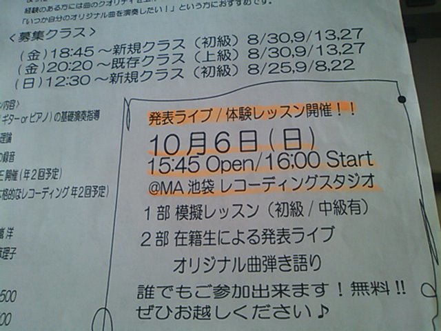 ¡ö»²²Ã´õ˾¼Ô¤Ï´õ˾Æü»þ¡¢¤ªÌ¾Á°¡¢¶ÛµÞÏ¢ÍíÀè¡ÊÅöÆüÏ¢Íí²Äǽ¤Ê·ÈÂÓÅÅÏÃÈÖ¹æ¤ä¥á¡¼¥ë¥¢¥É¥ì¥¹¡Ë¤òµºÜ¤·¥á¡¼¥ë¤ò¤ª´ê¤¤¤·¤Þ¤¹¡£¡¡yukawa70@yahoo.co.jp¡¡ Áá¤á¤Ç¤¢¤ì¤Ð¹ÖºÂÆüÄø¡Ü¹àÌܤÎÄ´À°¤â²Äǽ¤Ç¤¹¡£ ¡ù´ðËֺܹ A-5 9·î29ÆüÆüÍË¡ÁÁ´1²ó¡¢3000±ß¡£¸á¸å1»þ¡¢µÈ¾Í»û±Ø¶á½¸¹ç¡£¹ÖµÁ¤·¤Ê¤¬¤é¸ø±à¤Ç¼ÂÁ©»£±Æ¤·¤Þ¤¹¡£²¼µ¡¢£¤ò³Ø¤Ó¤Þ¤¹¡£¸á¸å2»þ30ʬ½ªÎ»¤òÌܰ¤ˤ·¤Æ¤¤¤Þ¤¹¡£ 10·î £Â¡Ý1 10·î5ÆüÅÚÍË¡ÁÁ´1²ó¡¢3000±ß¡£¸áÁ°10»þ30ʬ¡¢µÈ¾Í»û±Ø¶áÊÕ½¸¹ç¡£¹ÖµÁ¤·¤Ê¤¬¤é¸ø±à¤Ç¼ÂÁ©»£±Æ¤ò¤·¤Þ¤¹¡£²¼µ¡¢£¤ò³Ø¤Ó¤Þ¤¹¡£¸á¸å12»þ½ªÎ»¤ò