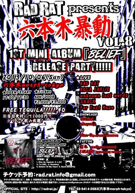 【最新LIVE情報】 開催日 : 2013/10/06(Sun) 開場時間 : 17:00 開演時間 : 17:30 出演時間 : 未定〜20min タイトル : 『六本木暴動 vol.8』 会場 : 六本木morph 住所 : 東京都港区六本木4-11-11 六本木GMビル B1F 前売料金 : \2,000 当日料金 : \3,000 ※ ※1ドリンク別 (1D+500) 連絡先 : singerkanade@me.com 内容 : Sweet Pop 始動 暴動と言う言葉には相応しくない俺たちですが、 音楽にはボーダーなんてない。 暴動者にもたまにはSweet Popを、、、 年明け「morph」ライブです!