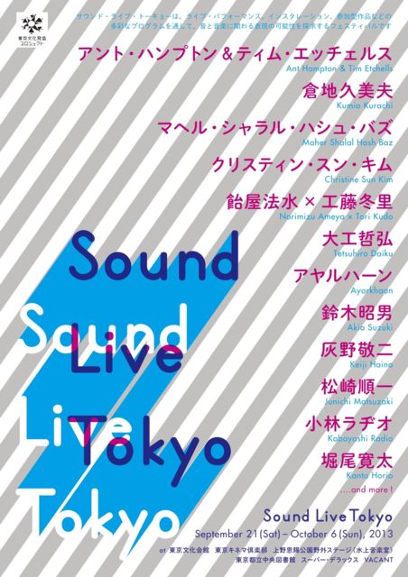 この度、9月21日〜10月6日に行なわれる、音と音楽に関わる表現の可能性を探求するフェスティバル、「サウンド・ライブ・トーキョー」に大工哲弘が参加します! ---------- 大工哲弘 10月6日 15:00開演 @東京文化会館小ホール 明るく開放的な響きに過酷な社会史・自然史を映す八重山ヤイマ民謡。その第一人者であり、伝承に深く立脚しつつ県境、国境、ジャンルを超えて活動、今年5月には傑作『ブルーヤイマ』をリリースした「大工さん」こと大工哲弘のワンマンライブ。2部構成でお届けします。大工哲弘(歌・三線)、大工苗子(