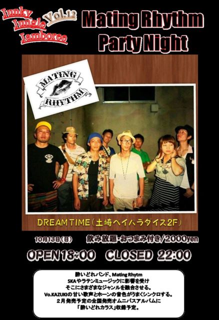 本日開催のライブパーティーです。 2000円4時間飲み放題、おつまみ付きと大変安くなってます。 詳しい内容はフライヤー画像をご覧ください。 なお、バンドさんやアコースティックのアーティストさんも楽器を持ってきていただければ 空いた時間に飛び入りライブも可能です。 ドリームタイムでのライブの雰囲気を試したいという方もお気軽に遊びにきてください。 8/ 18時〜22時ですが、途中参加もOKです。