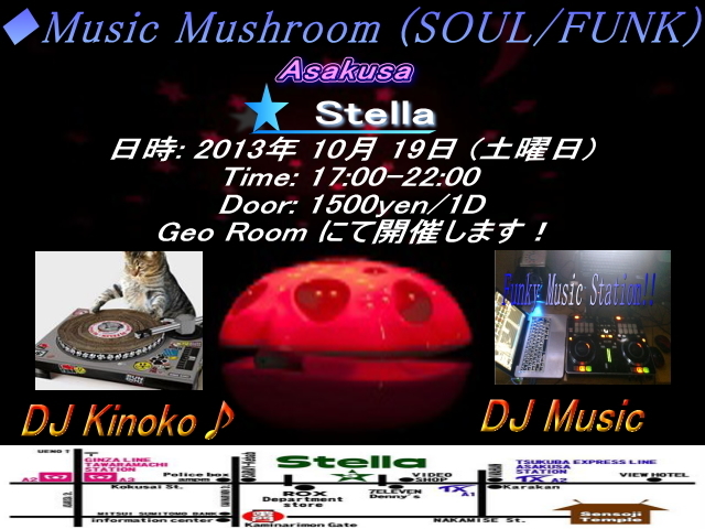 SOUL FUNK MAIN DJ Kinoko¢ö ¡¡DJ Music Door:1500yen/1D Geo Room¤Ë¤Æ³«ºÅ¤¤¤¿¤·¤Þ¤¹¡£ ÆÈÃǤÈÊи«¤Ë¤è¤ëÁª¶Ê¤Ç¤¹¤¬¡¢¤´ÅԹ礬¤è¤í¤·¤±¤ì¤Ð¤¤¤é¤·¤Æ¤¯¤À¤µ¤¤