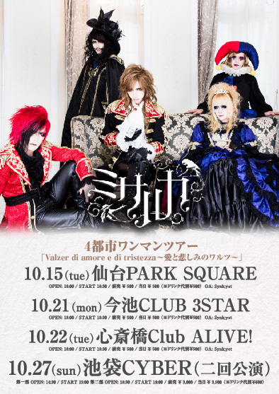 2013ǯ10·î22Æü ¿´ºØ¶¶Club ALIVE! ¥ß¥µ¥ë¥« ¥ï¥ó¥Þ¥ó¥Ä¥¢¡¼¡ÖValzer di amore e di tristezza¡Á°¦¤ÈÈᤷ¤ß¤Î¥ï¥ë¥Ä¡Á¡× Starwave Records presents OPEN: 18:00 / START 18:30 Á°Çä \ 500 / ÅöÆü \ 500 (¥É¥ê¥ó¥¯ÂåÊÌ¡ï500) ½Ð±é¡§¥ß¥µ¥ë¥« OA: Synk;yet ¥Á¥±¥Ã¥È ¢££Á¡§2013ǯ8·î21Æü ¿´ºØ¶¶Club ALIVE! ¥ß¥µ¥ë¥«ÊªÈΡÊNo.1¡Á100 ¥·¥ã¥Ã¥Õ¥ë¡Ë ¢££Â¡§¥Ð¥ó¥ÉͽÌó ¢££Ä¡§ÅöÆü·ô Æþ¾ì½ç¡§£Á¢ª£Â¢ª£Ã