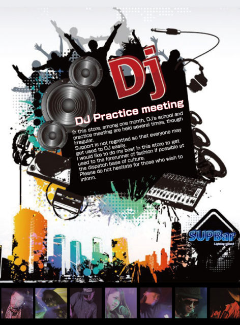 【DJ 練習会@SUP Bar】 かなり希望者が多いので、再会致します! セミナーシリーズ@SUP Bar ■話題沸騰! ■問い合わせ多数! ■おかげさまでDJ 練習会が予想以上の大好評! 「家でDJの練習はしているけど人前でPLAYはまだ自信がない・・・・ 」 「でも人前で試してみたい・・・。 」 「興味はあるけど機材がない・・・ 」 「でもちょっと試しに触ってみたい・・・。 」 「大音量の中でPLAYしてみたい・・・。」 「他のジャンルにチャレンジしてみたい・・・。」 最高の照明と大音量のSUP Barで試しにPLAY(あるい