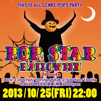 10/25(FRI) 【POPSTAR "Halloween"】 J-POP / ALL POPS [OPEN] 22:00 [ADV]2,000yen/1drink [DOOR]2,500yen/1drink [Halloween(仮装)特典] 1,000yen!!! ***アンケート特典/POPSTARよりプレゼント*** [POPSTAR DJ] JOMO / 長谷川潤 / Ono / Tune / and more… [LIVE] Chuppa / Mayumi / YUUKI / Kumiko and more... [VJ] m&m 【WHAT IS POPSTAR】 心踊らせるPOPミュージックをテーマにClubイベントを演出する「POPSTAR」 今回のテーマは「Haloween」!! 毎年多くの仮装したお客様と楽しい時間を作っています!今