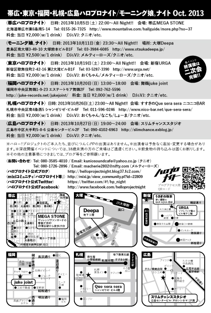 »¥Ëڥ⡼¥Ë¥ó¥°Ì¼¡£¸ø±é¸å¡¢ ¤¤¤Ä¤â¤Î²ñ¾ì¤È¤Ï¾ì½ê¤òÊѤ¨¡¢»¥ËÚ½é¤Î¥ª¡¼¥ë¥Ê¥¤¥È³«ºÅ¤Î¤ªÃΤ餻¤Ç¤¹¡ª ¡È»¥Ëڥϥí¥×¥í¥Ê¥¤¥È¡É Æü»þ¡§2013ǯ10·î26Æü(ÅÚ)22:00¡ÁAll Night!! ²ñ¾ì¡§¤¹¤¹¤¤Î Que sera sera ¥Ë¥³¥Ë¥³BAR¡¡011-596-0246 ½»½ê¡§»¥ËÚ»ÔÃæ±û¶èÆî4¾òÀ¾5 ¥·¥ã¥ó¥¼¥ê¥¼¡¦¥Ó¥ë4F http://www.nico-bar.net/que-sera-sera/ ÎÁ¶â¡§ÅöÆü2000±ß¡Ê1¥É¥ê¥ó¥¯ÉÕ¡Ë DJ&VJ¡§¥¯¥Ë¥ª¡¿¤Ê¤³¤Á¡¿¤ª¤¯¤Á¤ã¤ó¡¿¤·¤ç¡¼¤Þ ¡ù½Ð±é¼Ô¤Ïͽ¹ð¤Ê¤¯Äɲá¦Êѹ¹¤¹¤ë¾ì¹ç¤¬¤¢¤ê¤Þ¤¹¡£ ¡Ú̼¡£¥³¥ó¤Î¤¢¤È¤Ï¡¢¥Ï¥í¥×¥í¥Ê¥¤¥È¤Ç¥Ï¥í¥×¥í»°Ë桪¡Û º£Ç¯£³