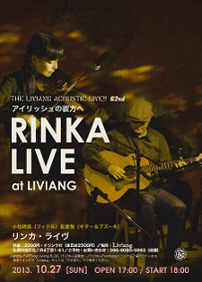 10·îºÇ¸å¤ÎÆüÍËÆü¤Ï¡¢¤¤Ã¤È¹ÈÍÕ¿¿¤ÃÀ¹¤ê¤Î¡Ö¤ê¤Ó¤¢¤ó¡×¤ÇRINKA¤Î¥é¥¤¥Ö¤Ç¤¹¡£ ¡ü 10·î27Æü¡ÊÆü¡ËThe Liviang Acoustic Live!! ¡Ò62nd¡Ó ¡Ú»þ´Ö¡Û17¡§00³«¾ì¡¢18¡§00³«±é ¡Ú½Ð±é¡ÛRINKA ¡Ú²ñ¾ì¡ÛLiviang ¤ê¤Ó¤¢¤ó ¡Ê»¥ËÚ»ÔÆî¶èËÌ¥ÎÂô£´ÃúÌÜ1-51 Áô´ä»³´Ñ¸÷ƻϩ Ä̤ê±è¤¤) http://wind.ap.teacup.com/liviang/ ¡ÚÎÁ¶â¡ÛͽÌó2,000±ß¡¦ÅöÆü2,500±ß¡Êfree soft drink¡Ë ¡ÚÌ䡦ͽÌó¡Ûmobile phone/ 090-9080-5993 E-mail/ liviang@infoseek.jp