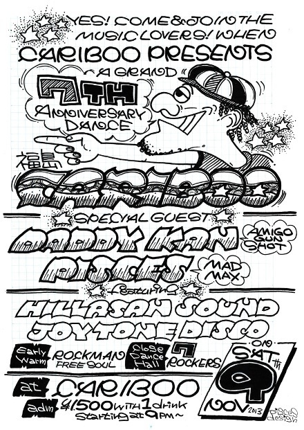 CARIBOO 7th ANNIVERSARY DANCE 11月9日(土) @CARIBOO START 21:00 1500円 ( WITH 1DRINK ) SPECIAL GUEST DADDY KAN ( AMIGO GUNSHOT ) PISCES ( MAD MAX ) Featuring HILLASAN SOUND JOYTONE DISCO EARLY WARM ROCKMAN ( FREE SOUL ) CLOSE DANCEHALL 7 ROCKERS FOOD その日限定でゲストのカンさんが東京で営む『TIPITINA』のフライド・ピザがカリブーで食べれます。 数量限定なので食べたい方は早めに来てください。 <Daddy-Kan Profile> 所属 Amigo Gunshot 都内を中心