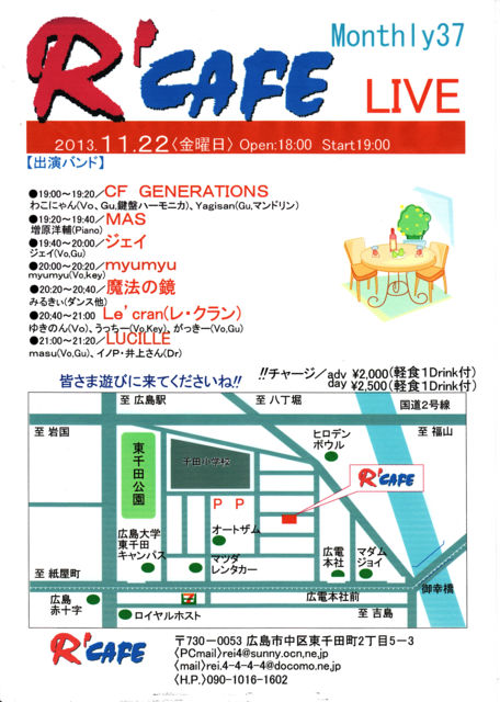 クラブイベントをいたします! 集合場所:中区流川(かに道楽の近く) 集合時間:2013.11.11(月) 21:00〜 会費:2000円(ワンドリンク付) ※mixiチェックお願いします!