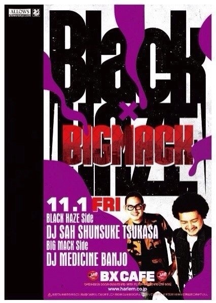 渋谷HARLEM毎週金曜日の鉄板パーティー『HAZE / BLACK HAZE』 そして今週はBLACK HAZEと"BIGMACK"が夢のコラボ ゲストお取りします♪ ★★★★★★★★★★★★★★★★★★★★★★★★ HARLEM一階の受付にて、 【バンジョのゲストのビッグ】 と言えば、何人でもゲスト料金にてご入場頂けます ★★★★★★★★★★★★★★★★★★★★★★★★ ゲスト料金 24時まで ¥1000/1d 24時以降 ¥1500/1d 『HAZE』 クラブシーンと音楽、アート、ファッション等のカルチャーを発展させ、様々な情報や人種が集