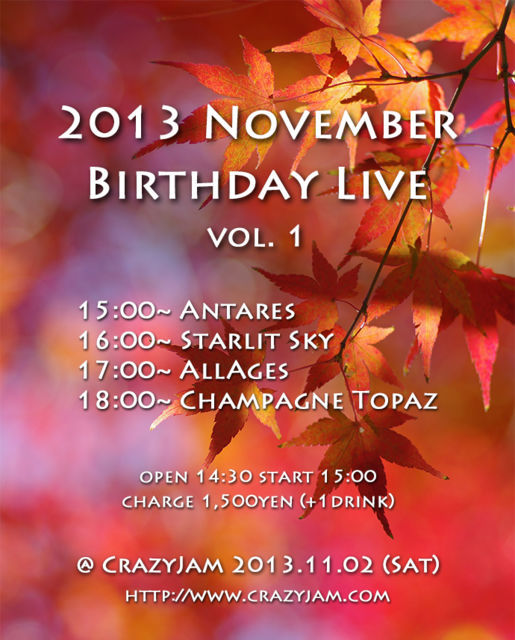 11·î¥Ð¡¼¥¹¥Ç¡¼¥é¥¤¥Ö¡¤Ë¤´½Ð±é¤¢¤ê¤¬¤È¤¦¤´¤¶¤¤¤Þ¤¹¡ª ÂǤÁ¹ç¤ï¤»¤Ï¤³¤Á¤é¤Ç¿Ê¤á¤Æ¤Þ¤¤¤ê¤Þ¤¹¡£ ¢¡½Ð±é ¡Ú1ÁÈÊç½¸Ãæ¡ª¡Û ¡¡¡¦Champagne Topaz ¡¡¡¡¡¡¡Ìsonoka¡ç¡¡¤¸¤å¡¼¤í¡¼¡¡ÈþÎë¡¡Haseman¡¡¤ï¤Ã¤È¤ó¡Í ¡¡¡¦Antares¡Ê¸ÅÆâÅì»Ò¡¦¥Ñ¥ê¥¹¥Þ¥Ã¥Á¡Ë ¡¡¡¡¡¡¡ÌVo: ¤è¡¼¤³¡¢Gt.Hassy¡¡Key.ÈþÎë¡õ¤¿¡¼¤Ñ¤ó¡¡Ba.¤ª¤ª¤Ä¤Ü¡¡Sax.Dice ¡¡¡¡¡¡¡¡¡¡Perc.¥Õ¥£¥ª¥Ò¥Ã¥³¥í¡¡Dr.mami ¡Í ¡¡¡¦AllAges ¡¡¡¡¡¡¡ÌVo1¡§Èþ¹á¤Á¤ã¤ó¡¡Vo2¡§¥µ¥Ã¥Á¡¼¡¡AG+Per¡§¥±¥ó¤Á¤ã¤ó¡¡G¡§¥è¥Ã¥·¡¼ ¡¡¡¡¡¡¡¡Key¡§Takes