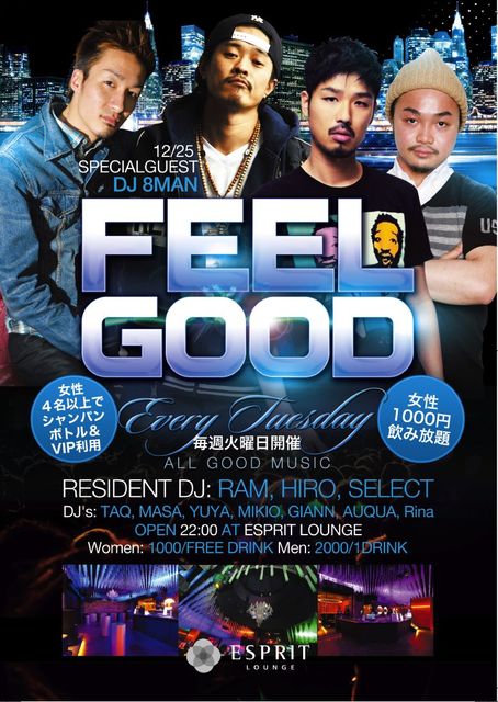 ☆★ディスカウント取得情報☆★ エントランスで 『ラムのゲストでフィールグッド』 とお伝えいただければ、 女性1000 / FREE DRINK + 1SHOT 男性1500/ 2DRINK にてご招待します!!! ★☆FEEL GOOD特典☆★ ・女性の御客様限定で4名様以上の入場でVIP利用&シャンパンボトルプレゼント!! ・女性の御客様限定で先着30名様にFEEL GOOD SPECIAL MIX CDプレゼント!! 個別にディスカウント希望の方はメッセージをください!!! その他ご不明な点がございましたらお気軽にメッセージ下さい!!! ☆★☆★☆★