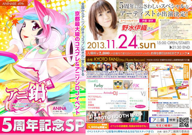 µþÅÔºÇÂçµé¤Î²ñ¾ìKYOTO FANJ¤ò¥¢¥Ë¥á¤È³Ú¤·¤¤´ë²è¤ÇËä¤á¿Ô¤¯¤¹¡ù µþÅÔ¤òÂåɽ¤¹¤ë¥³¥¹¥×¥ì&¥¢¥Ë¥½¥óDJ¥¤¥Ù¥ó¥È! ¡ö ¡ö ¡ö ¡ö ¡ö ¡ö ¡ö ¡ö ¡ö ¡ö ¡ö ¡ö ¡ö ¡ö ¡ö ¡ö ¡ö ¡ö ¡ö ¡ö ¥¢¥ËÆé49th-£µ¼þǯµÇ°£Ó£Ð-inµþÅÔFanJ 2013ǯ11·î24Æü (ÆüÍË15¡§00 OPEN/START) ¡Á¥¢¥ËÆé¤È¤Ï¡©¡Á ¥¹¥¿¥¸¥ªÊ¤Υ»¥Ã¥È¤Ç¤Î¥³¥¹¥×¥ì»£±Æ ¡Ü¼ÂÎÏÇÉ¥¢¥Ë¥½¥ó£Ä£Ê/£Ö£Ê ¡Ü¥¤¥é¥¹¥È¥ì¡¼¥¿¡¼¤ä¥Ç¥¶¥¤¥Ê¡¼ ¡ÜÀ¼Í¥¤µ¤ó ¤½¤³¤ËËè²ó¹ë²Ú¤Ê¥²¥¹¥È¤µ¤ó¤ò¸ò¤¨¡¢¤¢¤é¤æ¤ëÆó¼¡¸µ¥¸¥ã¥ó¥ë¤ò°¦¤¹¤ë¼Ôã¤Ë¤è¤ë Ëܵ¤