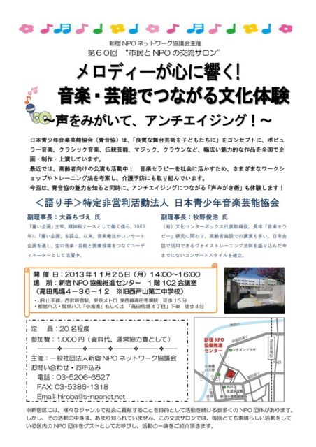 時間 : 19:30〜 (21:00終了予定)定刻にお出で願います。