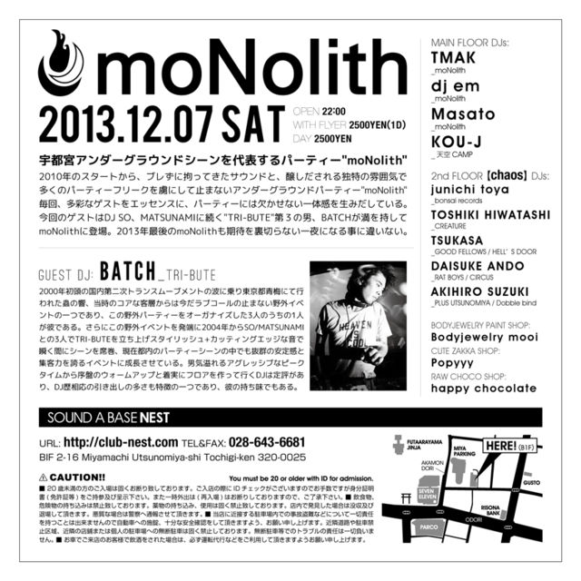 º£²ó¤Î¥²¥¹¥È¤ÏDJ SO , MATSUNAMI¤Ë³¤¯"TRI-BUTE"Â裳¤ÎÃË¡¢BATCH¤¬Ëþ¤ò»ý¤·¤ÆmoNolith¤ËÅо줹¤ë¡£