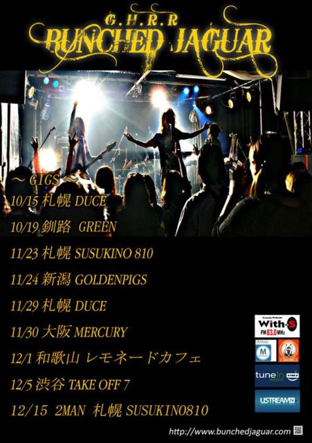 BUNCHED JAGUAR、大阪の次は初和歌山 果たして紀ノ川は超えるのか?! レモネードカフェはhide(hide with Spread Beaver)さん縁の場所なので、 BUNCHED JAGUAR一同、今からソコへ行くのを楽しみにしています。 コチラも「我孫子神音会」さんと御一緒させて頂きます。 さてぇ〜和歌山の夜はどんな事が起こるのでしょう♪ イベントの全詳細が出ていないので、 解る範囲でのイベント作成です。 (コチラも色々判明したら、編集にて追記します☆) 12/1(sun)[和歌山遠征] Place:和歌山レモネードカフェ (和歌山市元寺