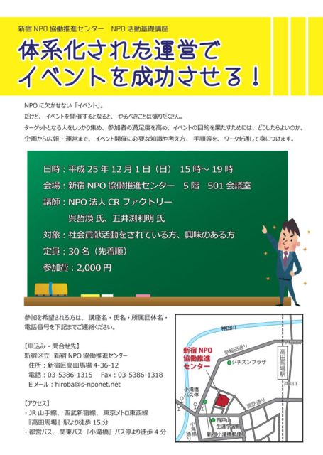 ³èư¤Ë·ç¤«¤»¤Ê¤¤¥¤¥Ù¥ó¥È¡£ ´ë²è¤«¤é±¿±Ä¤Þ¤Ç¡¢·×²èŪ¤Ë¸úΨ¤è¤¯¹Ô¤Ê¤¤¡¢ »²²Ã¼Ô¤Î½¸µÒ¤äËþÂÅÙ¤ò¹â¤á¤ë¡Ä ¤½¤ó¤Ê¥¤¥Ù¥ó¥ÈÀ®¸ù¤Î¥³¥Ä¤ò¡¢¶µ¤¨¤Æ¤¤¤¿¤À¤¤Þ¤¹¡£ Ëè²ó¥¤¥Ù¥ó¥È¤ËƬ¤òÊú¤¨¤Æ¤¤¤ëÊý¤ä¡¢ ¥¤¥Ù¥ó¥È¤ò¼çºÅ¤·¤Æ¤ß¤¿¤¤¤±¤É²¿¤«¤é¼ê¤ò¤Ä¤±¤Æ¤è¤¤¤«Ê¬¤«¤é¤Ê¤¤Êý¡¢ ¤¼¤Ò¤¼¤Ò¤´»²²Ã¤¯¤À¤µ¤¤¡£ ------------------- NPO³èư´ðÁùֺ ¡ÖÂηϲ½¤µ¤ì¤¿±¿±Ä¤Ç¥¤¥Ù¥ó¥È¤òÀ®¸ù¤µ¤»¤ë¡ª¡× Æü»þ¡§ Ê¿À®25ǯ12·î1Æü¡ÊÆü¡Ë15»þ¡Á19»þ ²ñ¾ì¡§ ¿·½ÉNPO¶¨Æ¯¿ä¿Ê¥»¥ó¥¿¡¼¡¡501²ñµÄ¼¼ ¡Ê¿·½É¶è¹âÅÄÇϾì4-36-12¡Ë ¹Ö»Õ