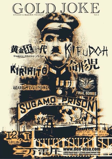 奇形児で出演致します。 KIFUDOH、黄金狂時代presents「GOLD JOKE Vol.2」 日程:12月1日(日) 開場17:30開演18:00 会場:東高円寺二万電圧 (03)6304-9970 杉並区高円寺南1-7-23L-GRAZIA東高円寺 B-1 http://den-atsu.com/ 共演:KIFUDOH/黄金狂時代/KIRIHITO/FINAL BOMBS/WORSTVISION DJ:カノウ(例のK) 料金:前売¥1800/当日¥2000(+1drink)