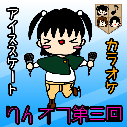 思い付き突発的オフ会! 面白い事やりたいが為に作ったオフ会ですv 今回は、0次会に準備運動でアイススケート、 1次会にメインのカラオケです!w 基本的に最大20名前後の小規模で濃厚なオフ会を開催してます! 初心者につき、手際悪かったりしましたらスミマセン!! カラオケでは、ライブみたいに歌って盛り上がろうぜーっていうのがコンセプト☆ あ、でも、今回はステージないです(爆 幹事らもオフ会への参加&開催も数回の初心者なので、初心者さんも大歓迎っ!! コスプレ・ヲタ芸もどんとこいです!! 曲縛