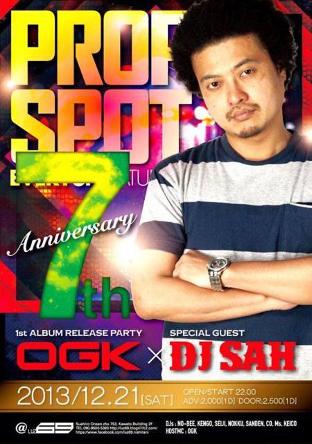 12/21今週土曜日 鳥取NO.1 HIPHOP PARTY 『PROPSPOT』もついに7周年!!!!! 7回目のお祭りには東京のクラブシーンを先導し 渋谷HARLEMにてSUNDAY DELIGHT・BLACK HAZE等多くのPARTYで MAIN DJ を務めるDJ-SAHをゲストに招致!! そして先日驚愕のファーストアルバム『THE BEGINNING』をリリースした 山陰で最もHOTなラッパーOGKのリリースLIVE partyです!! もうこれ以上ない周年に相応しい盛り沢山のpartyです!! --------PROPSPOT 7th Anniversary GUEST DJ SAH (from 東京) × OGK 1st ALBUM RELEASE party [HIPHOP / R&B] ■