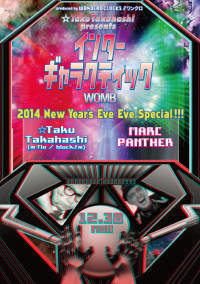 こちらのイベントにご興味ある方は是非メッセージください!! 以下、イベント詳細です!! ---------------------------------------------------------------------------------- きらめくサウンドの光線、宇宙をも照らすエネルギー! ☆Taku Takahashiによる銀河系ビッグイベントにMARC PANTHERが登場!! 2014年へと時空を超えるミュージック・ジャーニー!!! ☆Taku Takahashi による銀河系ビッグイベント『インターギャラクティック』。今年7月の1周年パーティではスペシャルゲストに中田ヤスタカ(capsule)を招き、その勢いのまま