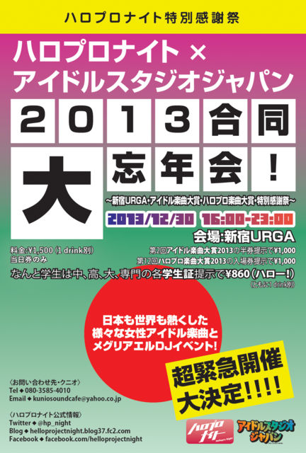 六本木LA35にて2009年より開催してまいりましたマイケルナイトですが、2013年でのLA35閉店に伴い今回が最後の開催となります。MJのライブを追体験できるような場所を作ってくれた店主チャチさんや隆之に感謝しつつ、2013年の最後を締めくくりたいと思います。