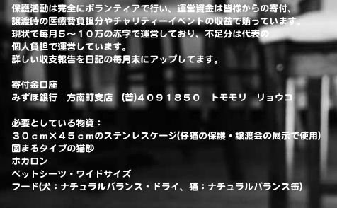 2012.4.13 イベント名を「【焦らない近寄らない電話しない】うさぎ多頭飼育レスキューの3無い運動展開中【支援金・都内預かり募集/物資支援は一時停止中】」より現在のものに変更しました。 重 要 電話問い合わせは絶対にしないでください 保護団体様への問い合わせはメール限定です。 すでにメールでやり取りしている方は、今までの内容を引用返信するか、引用しない場合はフルネームでお名前をお書きください。 現場を見に行かないでください 「うわさを聞いて しかも
