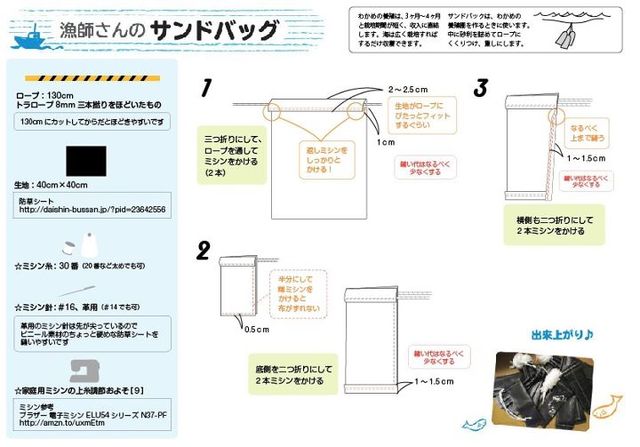 管理人様スペースをお借りいたします。 H24.9より東北応援隊の募集です。 http://www.nissho-ngk.com/tohoku/activity_sandbag.html ※ふんばろう東日本支援プロジェクトでの募集はH24.9で終了しました。 H24.9サンドバッグ配布のご報告 http://wallpaper.fumbaro.org/fishery/sandbag_haifu 東日本大震災の被災地はみなさんご存じのとおり漁業が盛んな地域です。 そのため、わかめなどの養殖に使う砂袋(サンドバッグ)が、 数十万個でも必要とされています。 が、すべてを流された漁師さんたちには購入する資金もありません。