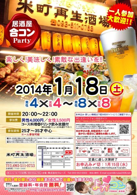¤³¤Î¥¤¥Ù¥ó¥È¤Ï25ºÐ¡Á35ºÐ¤ÎÊý¤¬Ãæ¿´¤Ë¤Ê¤ê¤Þ¤¹¤¬¡¢¤½¤Î¾¤ÎǯÎð¤ÎÊý¤â»²²Ã¤Ç¤¤Þ¤¹ ¤ª¿½¤·¹þ¤ß¤Ï¡¢²¼µ¥Û¡¼¥à¥Ú¡¼¥¸¤«¤é¤ª´ê¤¤¤¤¤¿¤·¤Þ¤¹ http://www.kitakyu-eight.com/ ¡û³«ºÅ»þ´Ö/¾ì½ê20¡§00¡Á22¡§00¡Ê19¡§50ʬ¡Á¼õÉÕ¡Ë ÊÆÄ®ºÆÀ¸¼ò¾ì¡ÊÊ¡²¬¸©Ë̶彣»Ô¾®ÁÒË̶èÊÆÄ®1-5-12¡Ë093-511-0753 ¡û»²²ÃÈñ¡¡ÃËÀ4000±ß¡¿½÷À3500±ß(¥³¡¼¥¹ÎÁÍý+°û¤ßÊüÂê) ÉáÃʤÎÀ¸³è¤äËèÆü¤Î¤ª»Å»ö¤«¤é¤Á¤ç¤Ã¤ÈµÙ·Æ¤·¤ÆÆ±À¤Âå¤ÎÃç´Ö¤È°ì½ï¤Ë³Ú¤·¤¯²ñÏäȤª¿©»ö¡õ¤ª¼ò¤Ç³Ú¤·¤¯À¹¤ê¾å¤¬¤ê¤Þ¤»¤ó¤«¡ª¡© ͧãºî¤ê¤«¤é¤Ç¤âÀ§È󤪵¤·Ú¤Ë¤´»²²Ã¤¯