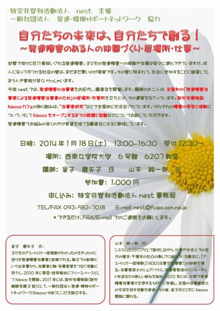 ¡Ú²ñ¾ì¤ÏÅìµþÅÔÆâ¤ÎNecco¤Ç¤Ï¤Ê¤¯¡¢Ê¡²¬¸©Ë̶彣»Ô¤È¤Ê¤ê¤Þ¤¹¡£¤ª¶á¤¯¤Ë¤ª½»¤Þ¤¤¤ÎÊý¡Ê¤â¡¢¤½¤¦¤Ç¤Ï¤Ê¤¤Êý¤â̵Íý¤»¤º¤Ë¡Ä¡Ë¡¢¤Õ¤ë¤Ã¤Æ¤´»²²Ã²¼¤µ¤¤¡ª¡Û ÆÃÄêÈó±ÄÍø³èưˡ¿Ínest¡¡¼çºÅ °ìÈ̼ÒÃÄË¡¿Í¡¡È¯Ã£¡¦Àº¿À¥µ¥Ý¡¼¥È¥Í¥Ã¥È¥ï¡¼¥¯¡¡¶¨ÎÏ ¡Ø¼«Ê¬¤¿¤Á¤Î̤Íè¤Ï¡¢¼«Ê¬¤¿¤Á¤ÇÁϤ롪 ¡Áȯã¾ã³²¤Î¤¢¤ë¿Í¤ÎÃç´Ö¤Å¤¯¤ê¡¦µï¾ì½ê¡¦»Å»ö¡Á¡Ù À¤´Ö¤Ç²¿¤«¤ÈÌñ²ð¼Ô°·¤¤¤µ¤ì¤ëȯã¾ã³²¡£»Ò¤É¤â¤Îȯã¾ã³²¤Ø¤ÎÍý²ò¤ä»Ù±ç¤Ï½ù¡¹¤Ë¿Ê¤ó¤Ç¤¤Æ¤¤¤Þ¤¹¤¬¡¢À®¿Í¤Ë¤Ê¤Ã¤Æ¤Ö¤Ä¤«¤ë¼Ò²ñ¤ÎÊɤϡ¢¤Þ¤À¤Þ¤À¸ü¤¤¤Î¤¬¸½¼Â¤Ç¤¹¡£¤½¤ÎÊɤËÁË¤Þ¤ì¤Æ¡¢¼Ò²ñ¤Ë»²²Ã¤¹¤ë¤³¤È¤ËÀä˾