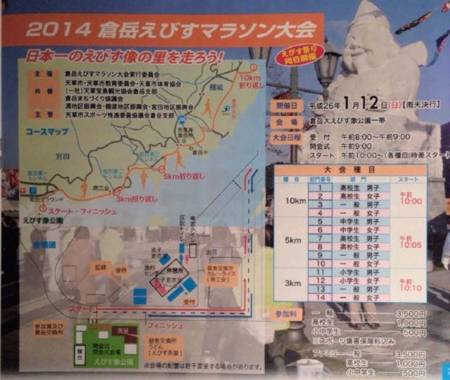 Æü»þ¡§Ê¿À®26ǯ1·î3Æü¶âÍËÆü¡¡¸áÁ°10»þ¥¹¥¿¡¼¥È¡Ê±«Å·Ãæ»ß¡Ë ¾ì½ê¡§·§ËÜ»ÔË̶è¹×Ä®¡¡¥Õ¡¼¥É¥Ñ¥ë·§ËÜ ÊÔÀ®¡§´ÆÆÄ¡¢Áª¼ê7¶è´Ö7̾¡Ê1.3km¶è´Ö¡ß4¡¢2.7km¶è´Ö¡ß3¡Ë¤¿¤À¤·1¡Á3¶è¤Ï¾ò·ï¶è´Ö ɽ¾´¡§³ÆÉôÌç2°Ì¤Þ¤Çɽ¾´¡£¶è´Ö¾Þ¤Ï³Æ1°Ì ³«²ñ¼°µÚ¤ÓÊIJñ¼° ¡³«²ñ¼°¡¡¸áÁ°9»þ¡¡¼ÇÀ¸¹¾ì¤Ë¤Æ ¢ÊIJñ¼°¡¡ÀëÀÀ¥Þ¥é¥½¥ó¡Ê¢¨1¡Ë½ªÎ»30ʬ¸å¡¢¼ÇÀ¸¹¾ì¤Ë¤Æ ¢¨£±¡ÖÀëÀÀ¥Þ¥é¥½¥ó¡×¤È¤Ï¡¦¡¦¡¦¡© ¡¡1.3km¤Î¥³¡¼¥¹£±¼þ¤ò¤¢¤é¤«¤¸¤áÀë¸À¤·¤¿¥¿¥¤¥à¤Î¸íº¹¤Ç¶¥¤¦¶¥µ»¤Ç¤¹ ¡¡¸ÂÅ٤ϣ±£°Ê¬°ÊÆâ¤È¤·¡¢»þ·×Åù¤Ïɬ¤º³°¤·¤ÆÁö¤ê¤Þ¤¹ Àë¸À¥Þ¥é¥½¥ó¤â±ØÅÁ¤È°ì½ï¤Ë¿½¤·¹þ¤ß