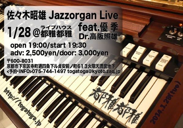¥Ï¥â¥ó¥É¤È¥í¡¼¥é¥ó¥É¤Î£²Âæ¤òʤ٤ƤΥ饤¥Ö¤Ç¤¹ ¾Ü¤·¤¯¤ÏÅÔ²íÅÔ²í¤Þ¤Ç º´¡¹ÌÚ¾¼Íº Jazzorgan Live feat.Í¥ µ¨ ¡÷¥é¥¤¥Ö¥Ï¥¦¥¹ÅÔ²íÅÔ²í¡ÊµþÅÔ¡Ë open 19:00/start 19:30 adv: 2,500yen/door: 3,000yen ¥é¥¤¥Ö¥Ï¥¦¥¹ÅÔ²íÅÔ²í¡¡¡Êhttp://togatoga.jp) ¢©600-8031 µþÅÔ»Ô²¼µþ¶è»ûÄ®Ä̻;ò²¼¥ëÄç°ÂÁ°¥ÎÄ®£¶£±£³²Ð½üÅ·ËþµÜÃϲ¼ <ͽÌó¡¦INFO> 075-744-1497 togatoga@kyoto.zaq.jp