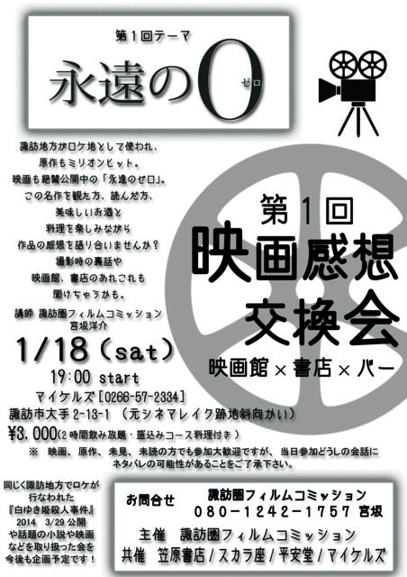 Ãϸµ¤Î±Ç²è´Û¤È½ñŹ¤È¥Þ¥¤¥±¥ë¥º¤Î¥³¥é¥Ü¥¤¥Ù¥ó¥È¤Ç¤¹¡ª ¿ÛˬÃÏÊý¤¬¥í¥±ÃϤȤ·¤Æ»È¤ï¤ì¡¢¸¶ºî¤â¥ß¥ê¥ª¥ó¥Ò¥Ã¥È¤ÇÀ仿¾å±ÇÃæ¤Î¡Ö±Ê±ó¤Î0¡×¡£ ¤³¤Î̾ºî¤ò´Ñ¤¿Êý¡¢ÆÉ¤ó¤ÀÊýƱ»Î¤Ç¸ì¤ê¹ç¤¤¤Þ¤»¤ó¤«¡© ¿Ûˬ·÷¥Õ¥£¥ë¥à¥³¥ß¥Ã¥·¥ç¥ó(¿ô¡¹¤Î±Ç²è¥í¥±¤ò¿ÛˬÃÏÊý¤ËͶÃ×)¤ÎµÜºäÍβ𤵤ó¤äÃϸµ¤Î±Ç²è´Û¤µ¤ó¡¢½ñʤµ¤ó¤«¤é¤¤¤í¤ó¤Ê΢Ïä¬Ê¹¤±¤ë¤«¤â¡©¡ª Æü»þ:1¡¿18(ÅÚ) 19:00start ²ñ¾ì:¥Þ¥¤¥±¥ë¥º ²ñÈñ:3000±ß(2»þ´Ö°û¤ßÊüÂê¡¢À¹¤ê¹þ¤ß¥³¡¼¥¹ÎÁÍýÉÕ¤) ¹Ö»Õ:¿Ûˬ·÷¥Õ¥£¥ë¥à¥³¥ß¥Ã¥·¥ç¥ó µÜºäÍβð»á ¾°¡¢¤³¤Î¥È¥Ô¤«¤é¤Î¥¨¥ó¥È¥ê¡¼¤Ç¥Þ¥¤¥±¥ë¥ºÏȤÈ